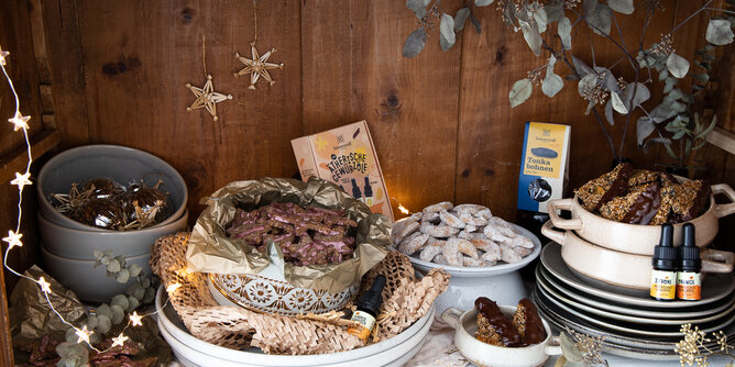 Mit schwungvoller Musik kommt die Weihnachtsbacklaune ganz bestimmt. Der Handfeger oder besser gleich der Staubsauger in Reichweite ist sehr empfehlenswert. So können erwachsene Backelfen zwischendurch etwaige Mehl-, Nuss oder Zuckerbrösel beseitigen, bevor sich der elfengleiche Backstaub im ganzen Zuhause verteilt. Sonst sollte man etwas Zeit und ein großes Brett zum Ausrollen, Wälzen und Glasieren zur Hand haben.